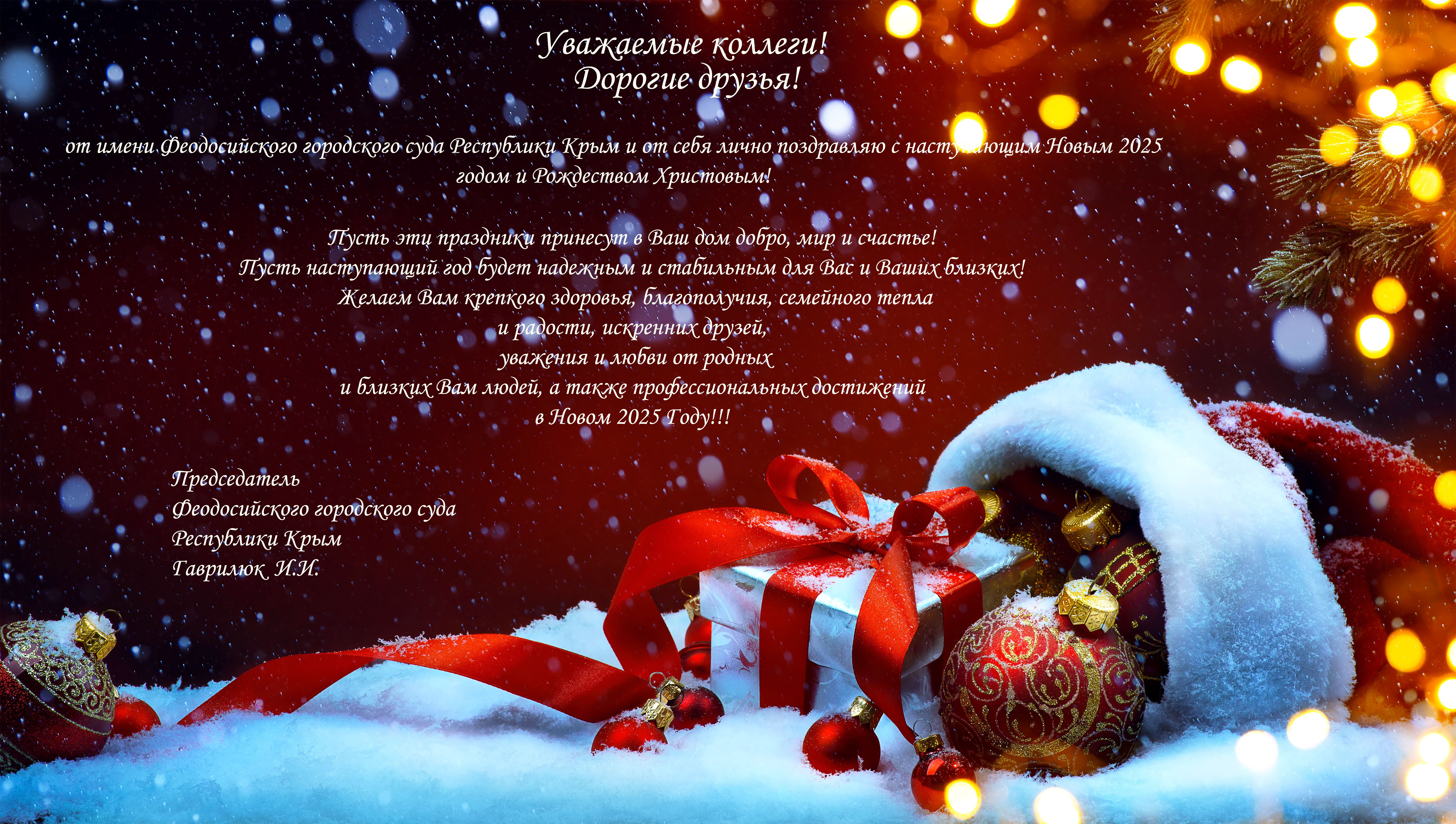 | Поздравление председателя Феодосийского городского суда с наступающими новогодними праздниками | версия для печати |