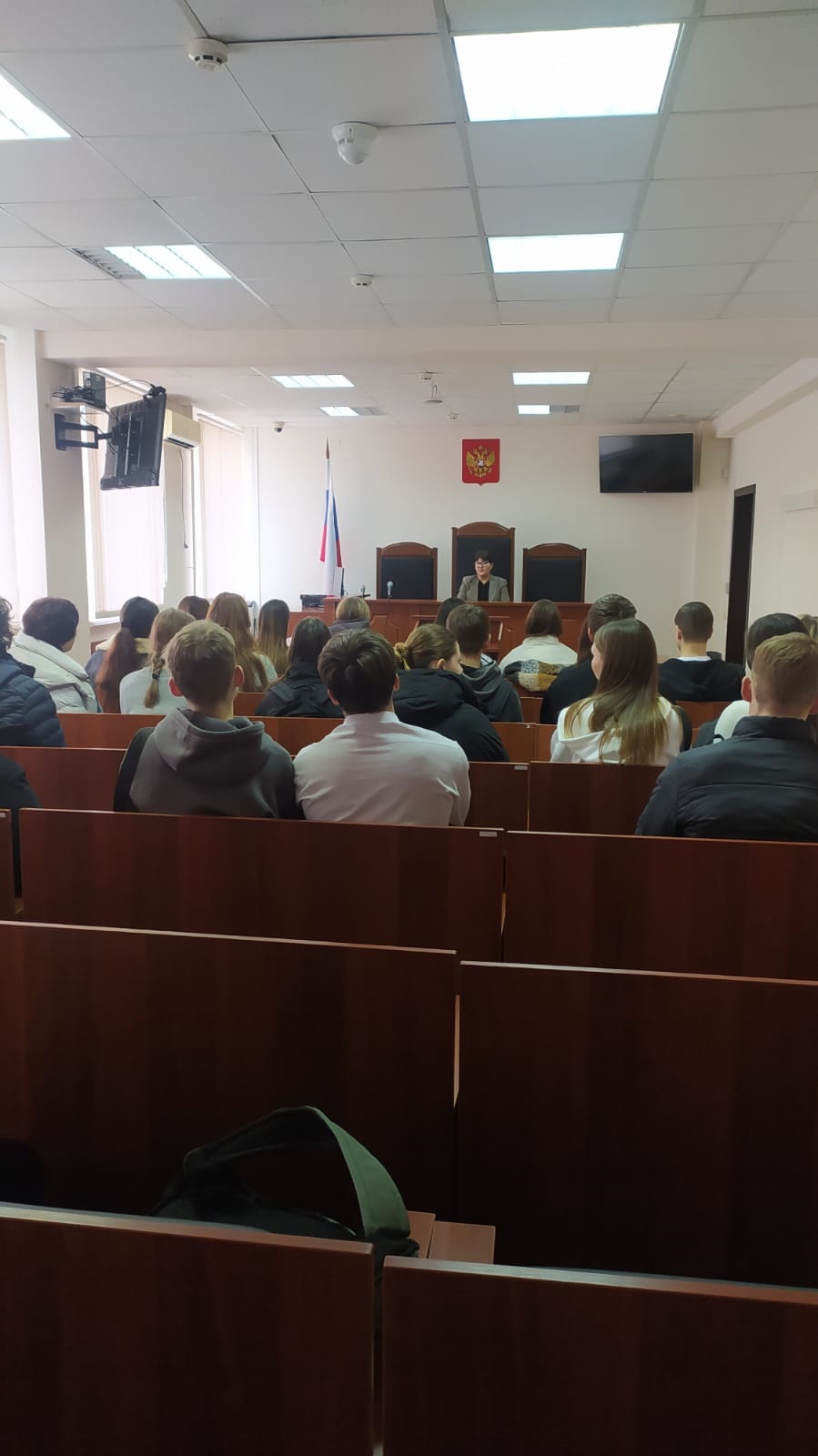 Цель экскурсии – повышение юридической грамотности и правого воспитания обучающихся, формирование позитивного отношения к судебной системе, уважительного отношения к закону. Экскурсия началась с холла здания суда, где судебные приставы, по обеспечению установленного порядка деятельности судов, познакомили ребят с постом охраны, который сейчас оборудован высококлассной техникой, правилами пропускного режима. В ходе обзорной экскурсии гости посетили приемную, залы судебных заседаний; отделы делопроизводства суда, а также ознакомились с информацией на стендах. Ребята также присутствовали в судебном заседании под председательством судьи Шаповал Анастасии Владимировны по уголовному делу по обвинению подсудимого за незаконные приобретение и хранение наркотических средств без цели сбыта, а также рассказала ребятам о судебной практике рассмотрения уголовных дел данной категории и мерах ответственности, которые применялись к лицам их совершившим.Мероприятие получилось весьма информативным и интересным. Получив первые впечатления о суде, как о месте цивилизованного разрешения споров и наказания виновных, представления о судебном процессе, а также возможность вживую ощутить рабочую атмосферу суда, ребята проявили большую заинтересованность, задавая вопросы и получая на них исчерпывающие ответы.