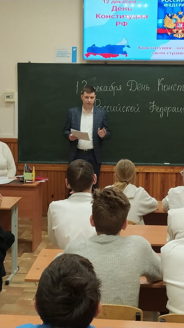 класса МБОУ «"Гимназия № 5 г. Феодосии Республики Крым"Ученики 7-Б класса подготовились к правовому уроку и представили свою презентацию на тему «Конституция Российской Федерации», в преддверии праздника Дня Конституции, который будет отмечаться 12 декабря. Далее было предоставлено слово Виктору Викторовичу, который проводя беседу с ребятами, подробно рассказал о правах, обязанностях и ответственности несовершеннолетних, о судебной системе, о профессии судьи. Из личного опыта рассказал какие высокие требования предъявляются к кандидатам в судьи. Привел интересные примеры из судебной практики. Судья высказал ребятам напутствие о правопослушном поведении и умении разрешать любые конфликты мирным путем. В завершении встречи Виктор Викторович пожелал школьникам успехов в учебе и упорства в достижении поставленных целей. Пресс-служба Феодосийского городского суда Республики Крым |